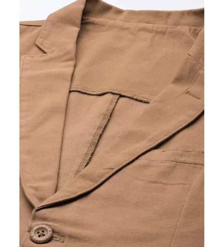 Men's Slim Fit Khaki Cotton Solid Oxford Blazer