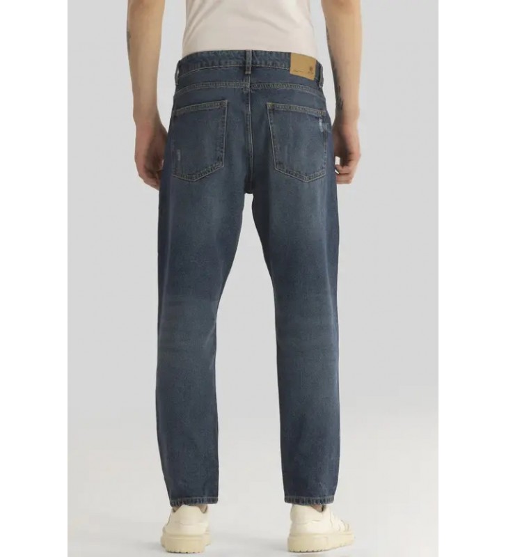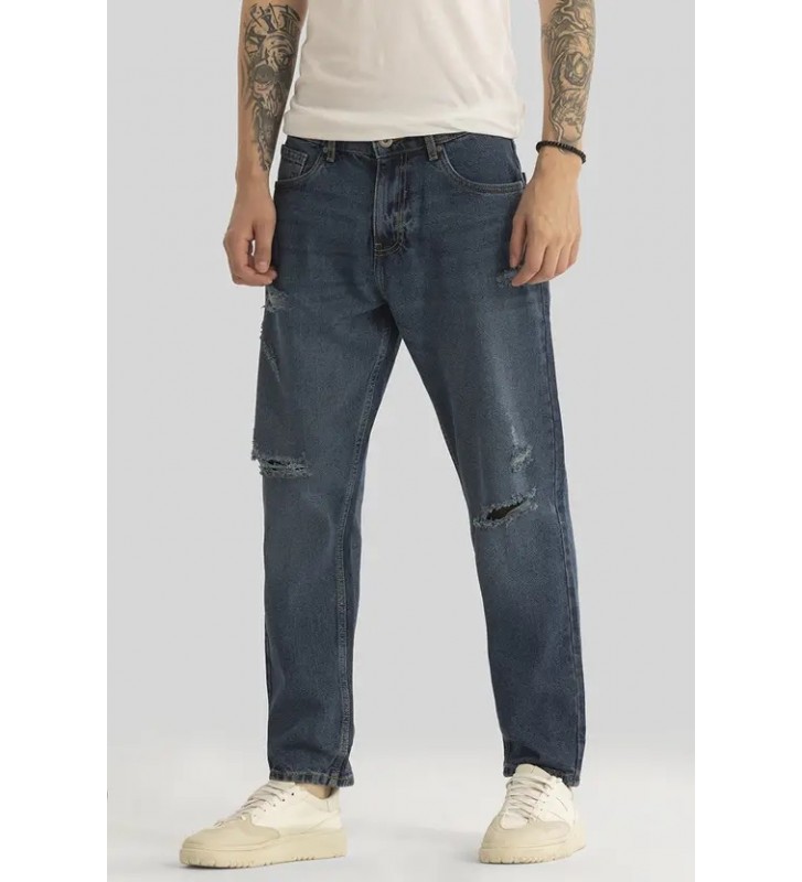 Make a bold statement with these navy ripped Baggy jeans from Snitch. Designed for the fashion-forward individual, these jeans combine edgy style with a comfortable fit. The cotton blend material offers flexibility and durability, ensuring these jeans can keep up with your active lifestyle. The Baggy fit hugs your legs, creating a sleek silhouette that's perfect for showcasing your favorite footwear. The ripped details add a touch of rebellious charm, making these jeans a standout piece in your wardrobe. The solid navy color is versatile and easy to style, allowing you to create numerous outfits for different occasions. The button-and-zip closure ensures a secure fit and easy wear. Whether you're heading to a concert, meeting friends for a night out, or just running errands, these Snitch jeans are the perfect choice for adding a cool, casual vibe to your look. The navy color is a classic choice that pairs well with both light and dark tops, giving you endless styling options. The ripped details add texture and visual interest, making these jeans a focal point of your outfit. Pair them with a simple white tee for a classic look, or dress them up with a button-down shirt and blazer for a smart-casual ensemble. The cotton blend material offers breathability and comfort, making these jeans suitable for all-day wear. The Baggy fit is perfect for tucking into boots or showing off your favorite sneakers. These Snitch jeans are designed to be a versatile piece in your wardrobe, easily transitioning from day to night looks. Embrace your edgy side and make a fashion statement with these navy ripped Baggy jeans.