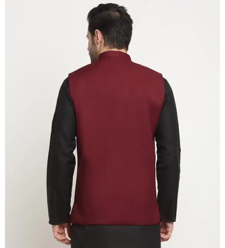 Step up your style game with this timeless Sleeveless Nehru Jacket, designed for the modern man who values tradition with a twist. Crafted from premium fabric, this jacket features a tailored fit, mandarin collar, and a sleek, sleeveless design that adds versatility and comfort to any ensemble.Perfect for layering over a kurta, shirt, or even a T-shirt, it’s an ideal choice for festive occasions, weddings, or smart-casual outings. With its structured silhouette and minimalist charm, this jacket blends cultural heritage with contemporary flair.
