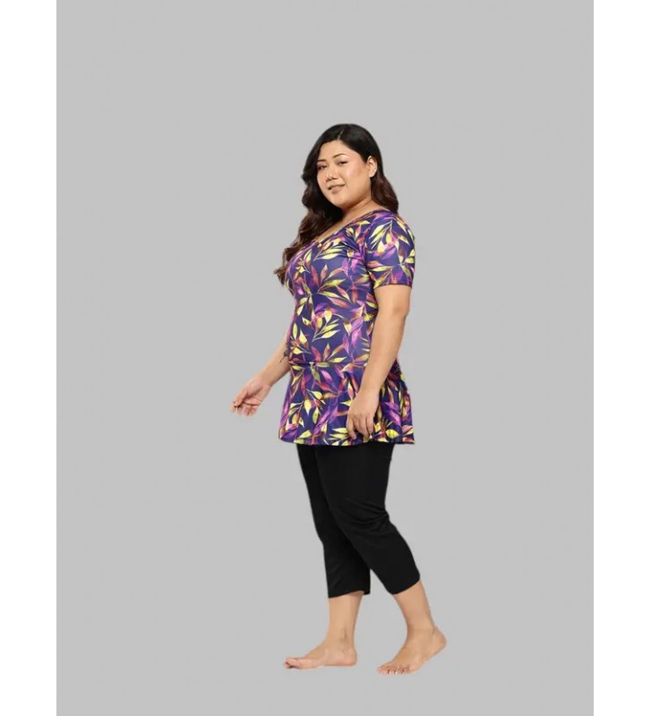 Womens Sports Wear Purple-Black Colour Floral Print Nylon Plus Size Swim Suit