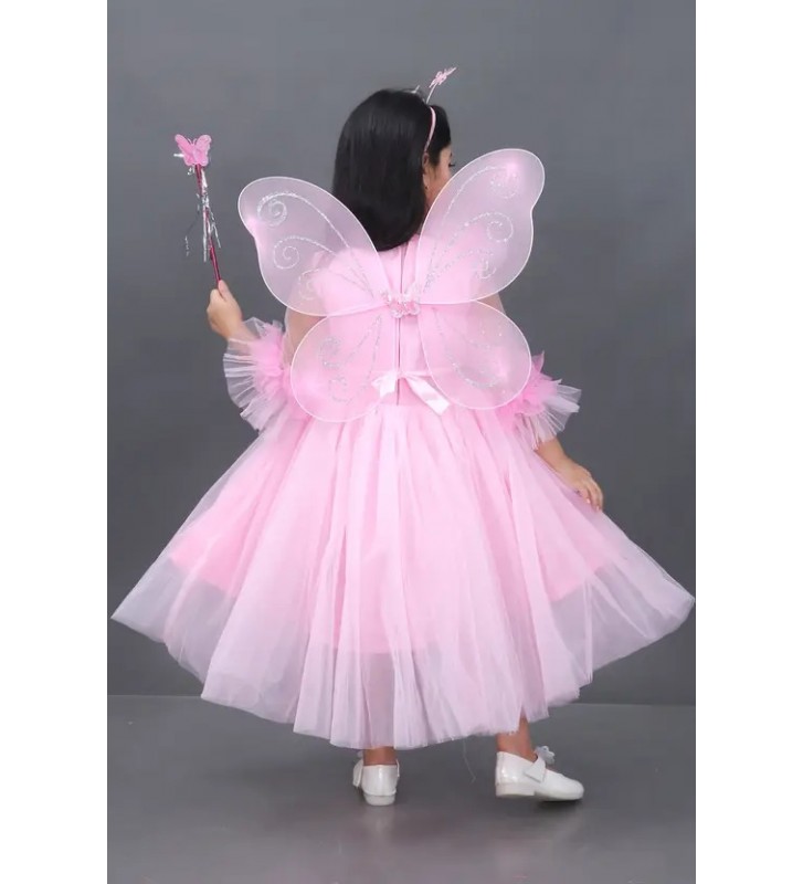 Girls Calf Length Party Dress (Pink, 3/4 Sleeve)