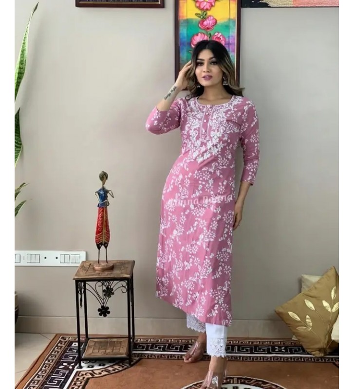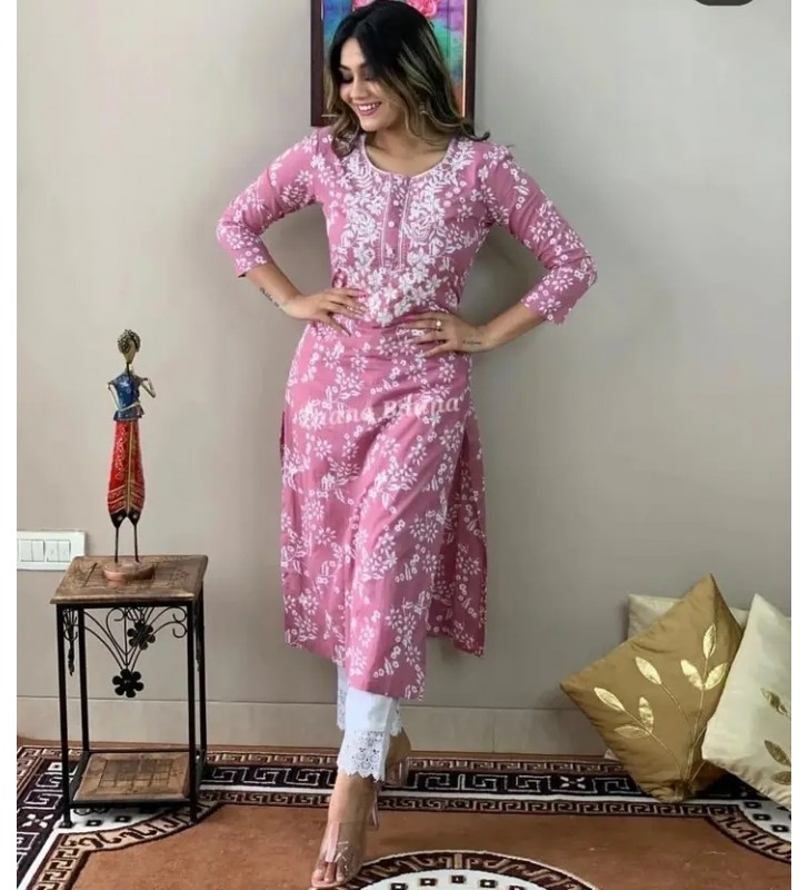 Women's Fabulous Trendy Embroidered Kurta Set In Cotton