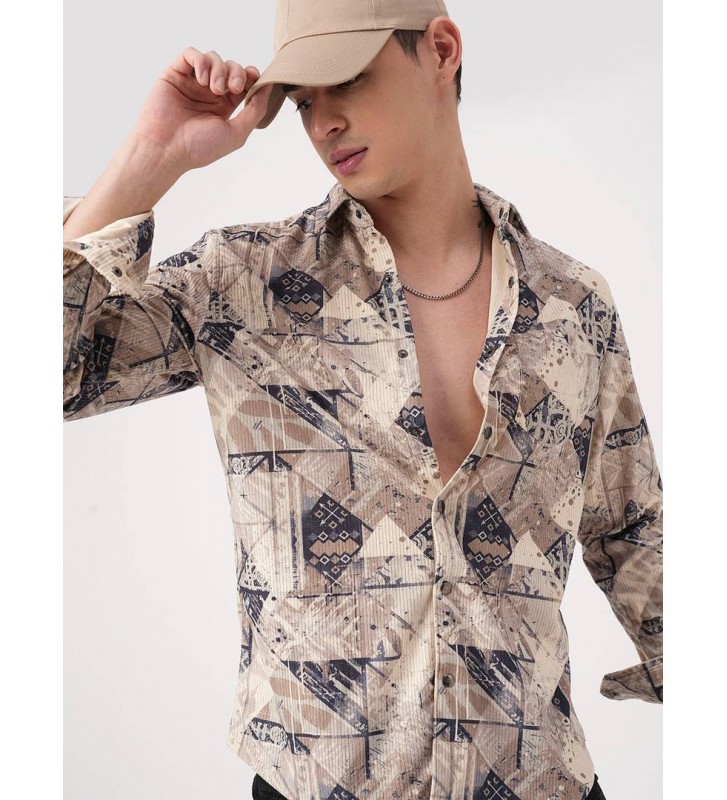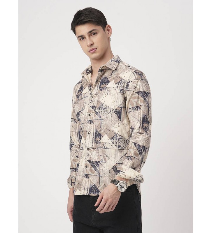 Men Slim Fit Self Design Cut Away Collar Casual Shirt