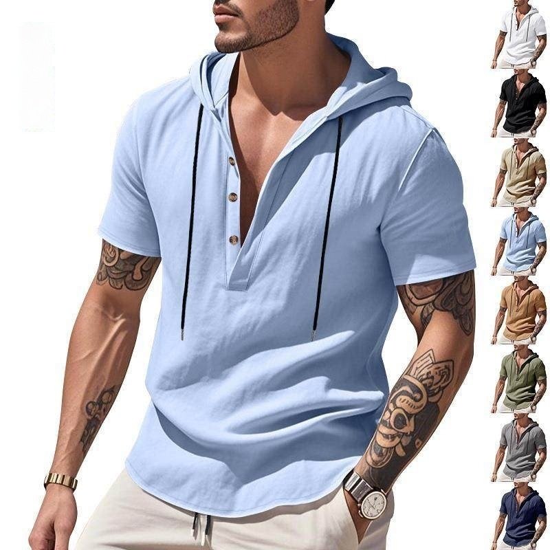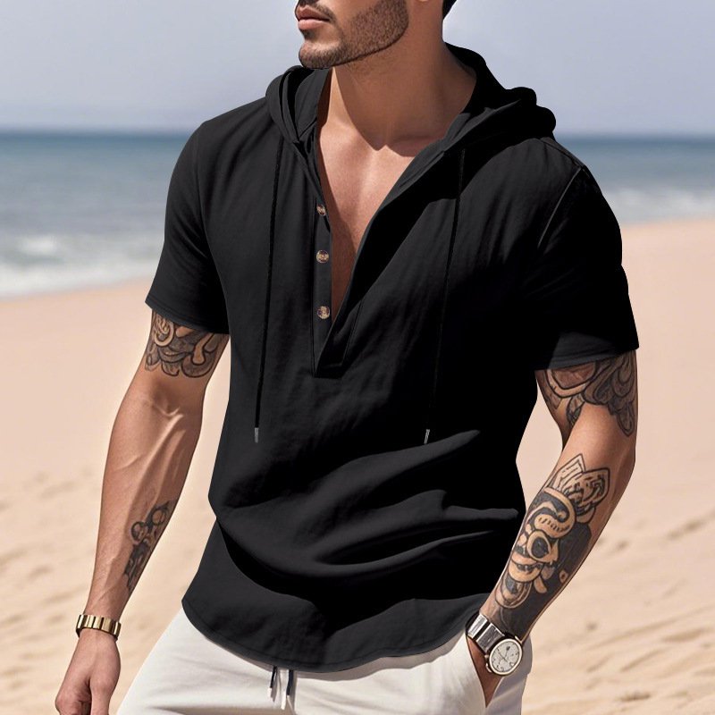 Casual Breathable Linen Hooded Henley Shirt With Short Sleeves  Men's Shirt Breathable Comfortable Spring Summer Fashion Basic Color StreetwearCasual Breathable Linen Hooded Henley Shirt With Short Sleeves Men’s Shirt Breathable Comfortable Spring Summer Fashion Basic Color Streetwear